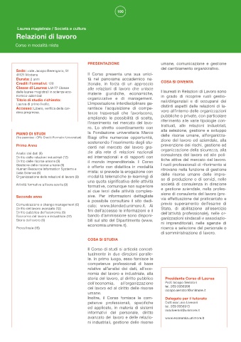 (Tra parentesi i CFU Crediti Formativi Universitari) Biagi offre numerose opportunità, zione del lavoro ed aziendale, alla