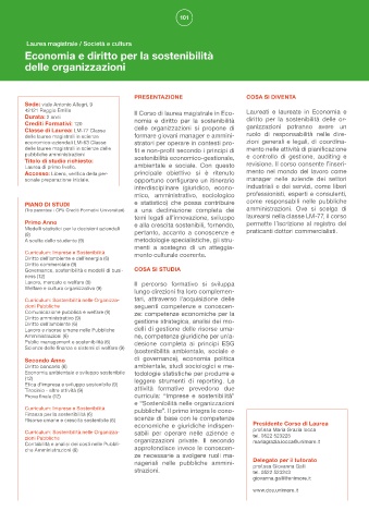 Curriculum: Imprese e Sostenibilità mento culturale coerente.