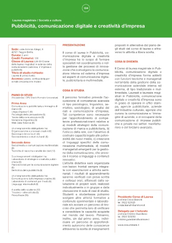 42121 Reggio Emilia Il corso di laurea in Pubblicità, co- verso le attività a libera scelta.