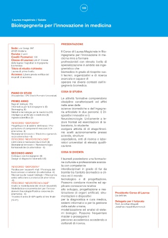 41125 Modena Il Corso di Laurea Magistrale in Bio-