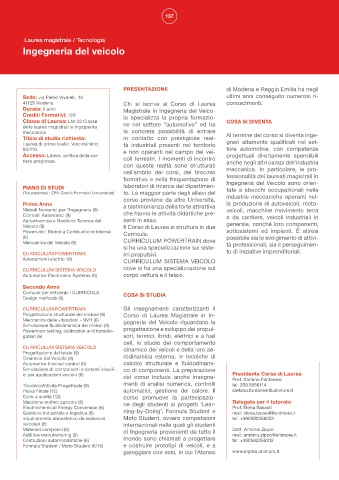 formativo e nella frequentazione di Ingegneria del Veicolo sono orien-