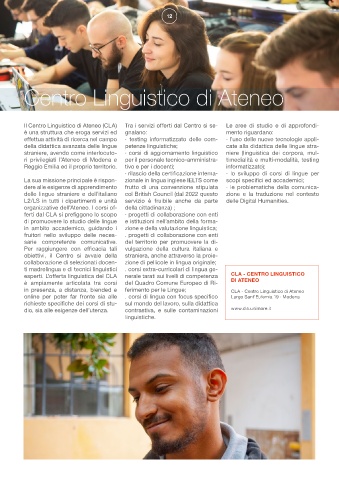 Il Centro Linguistico di Ateneo (CLA) Tra i servizi offerti dal Centro si se- Le aree di studio e di approfondi-