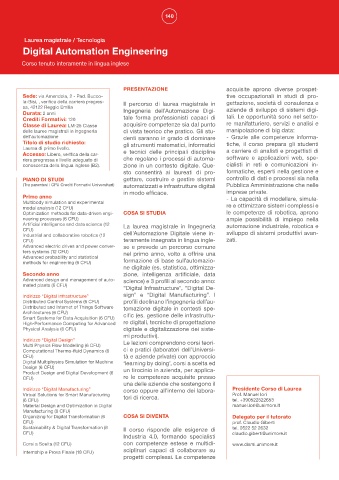 Durata: 2 anni Ingegneria dell’Automazione Digi- tali. Le opportunità sono nel setto-
