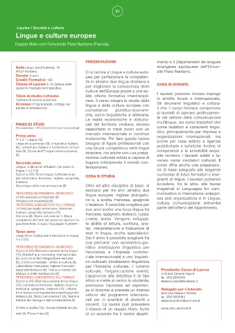 Linguistica, traduzione e mediazione lingua Dal II anno è possibile scegliere fra