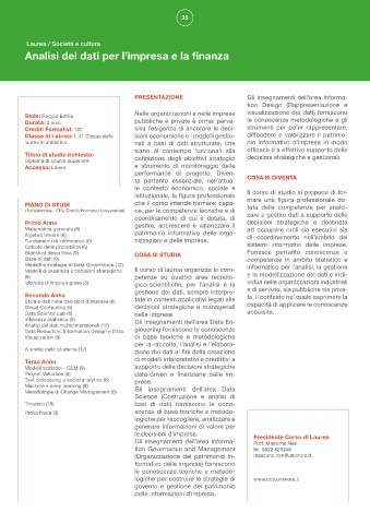 Modelli di business e decisioni strategiche Il corso di laurea organizza le com- e la modellizzazione dei dati e indi-