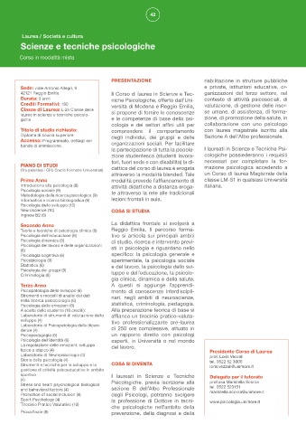 42121 Reggio Emilia Il Corso di laurea in Scienze e Tec- ganizzazioni del terzo settore, nel