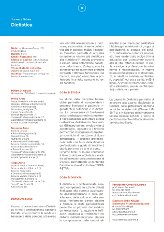 delle lauree in professioni sanitarie e clinico, della ristorazione colletti- stili di vita, effettua ricerca. Il Die-