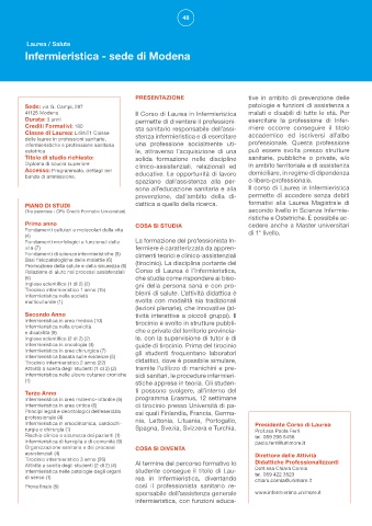 41125 Modena Il Corso di Laurea in Infermieristica malati e disabili di tutte le età. Per