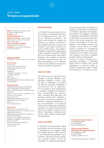 (Tra parentesi i CFU Crediti Formativi Universitari) specifiche personalizzate alle esi- Il corso di Laurea in Terapia occu-