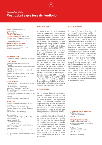 41125 Modena Il Corso di Laurea professionaliz- Il Corso ha l’obiettivo di formare, nel