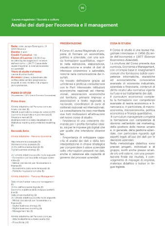 dell’economia - LM-77 Classe delle to nella estrazione, elaborazione, La struttura del Corso prevede due