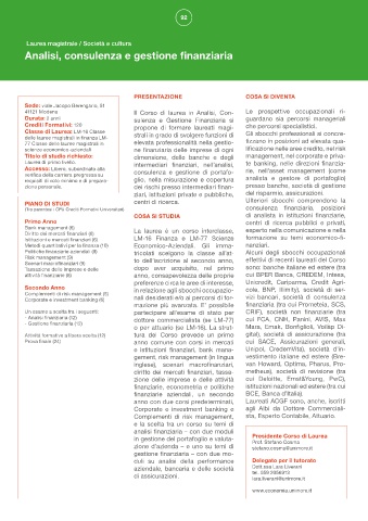 41121 Modena Il Corso di laurea in Analisi, Con- Le prospettive occupazionali ri-