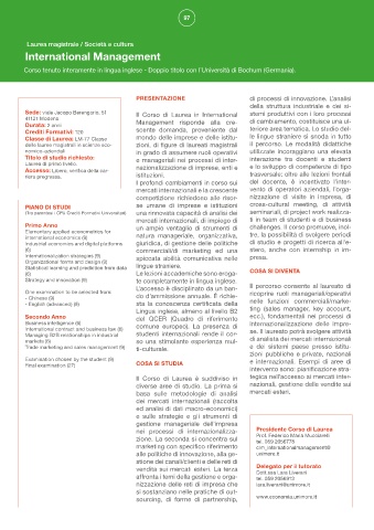 Sede: viale Jacopo Berengario, 51 Il Corso di Laurea in International stemi produttivi con i loro processi