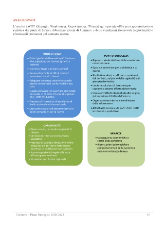 sintetica dei punti di forza e debolezza interni di Unimore e delle condizioni favorevoli (opportunità) e