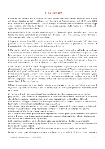 migliorare la qualità della ricerca di Ateneo. Il Piano individua alcuni punti prioritari e propone soluzioni,