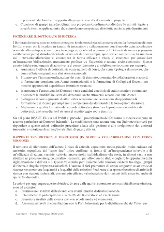 Sia nel piano REACT-EU sia nel PNRR si prevede il potenziamento del Dottorato di ricerca e si pone un
