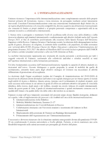 trasversali. Considera l’Internazionalizzazione come una connotazione fondamentale degli Atenei che, in