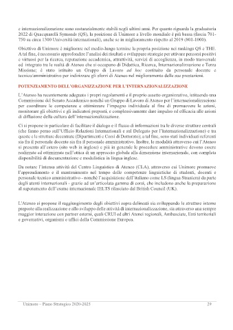 Commissione del Senato Accademico nonché un Gruppo di Lavoro di Ateneo per l’internazionalizzazione