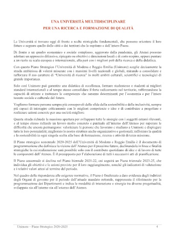 Il Piano strategico sessennale 2020-2025 dell’Università di Modena e Reggio Emilia è il documento di
