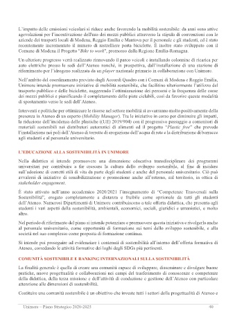 Unimore intende promuovere iniziative di mobilità sostenibile, che facilitino ulteriormente l’utilizzo del