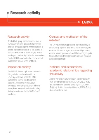 research), for hosting in the LARMA main on-going ones are with ISAC-CNR, INGV, INAIL