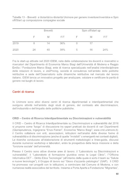 Page 60 - Bilancio di genere 2019 - approvato giugno 2021