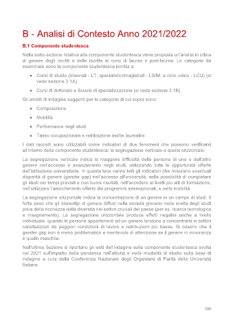 Nella sotto-sezione relativa alla componente studentesca viene proposta un’analisi in ottica