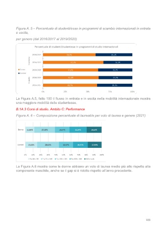 La Figura A.5, fatto 100 il flusso in entrata e in uscita nella mobilità internazionale mostra