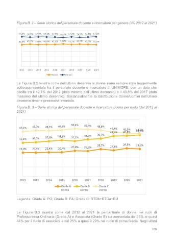 Figura B. 2 – Serie storica del personale docente e ricercatore per genere (dal 2012 al 2021)