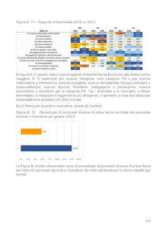 La Figura B. mostra chiaramente come la percentuale di personale docente di prima fascia