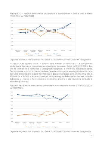 Figura B. 14 – Forbice delle carriere universitarie e accademiche in area STEM (2017/2018