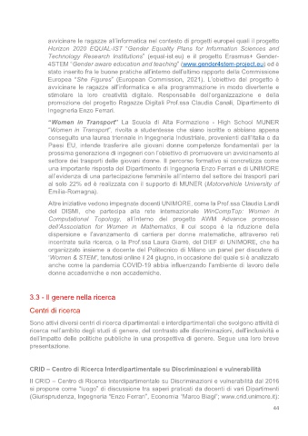 dell’impatto delle politiche pubbliche in una prospettiva di genere. Segue una loro breve