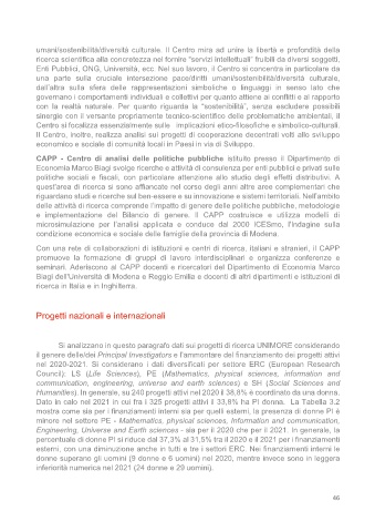 Humanities). In generale, su 240 progetti attivi nel 2020 il 38,8% è coordinato da una donna.