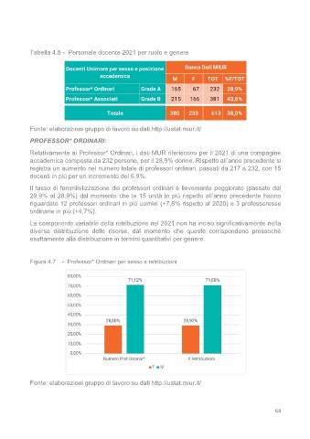 Tabella 4.8 - Personale docente 2021 per ruolo e genere