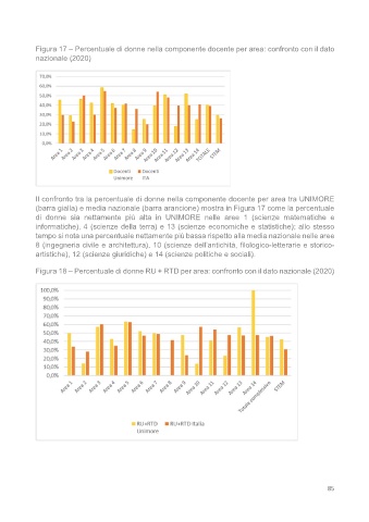 di donne sia nettamente più alta in UNIMORE nelle aree 1 (scienze matematiche e