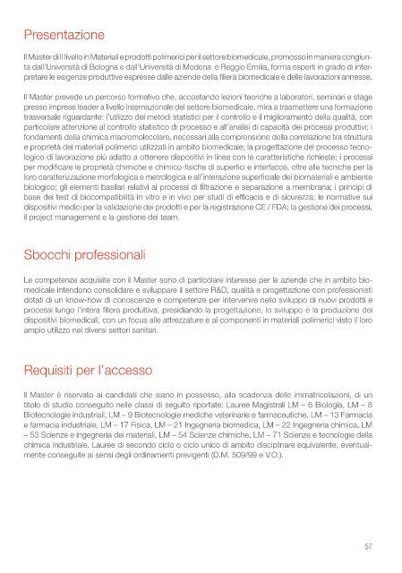 presso imprese leader a livello internazionale del settore biomedicale, mira a trasmettere una formazione