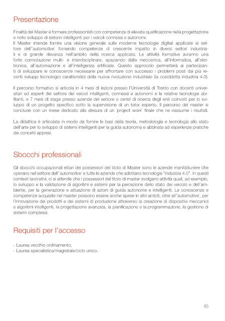 competenze acquisite nel master possono essere anche spese in altri ambiti, oltre all’`automotive`, per