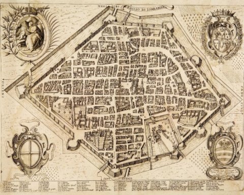 Profilo storico | Historical Profile 63 Justus Sadeler, City map of Reggio Emilia, 1619, Biblioteca Panizzi, Reggio Emilia (photo by GL)