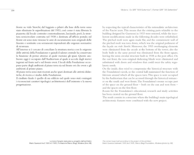 piazzetta dal locale costruito contestualmente, lasciando, però, la strut- building designed by Guerzoni in 1933 were restored, while the inco-