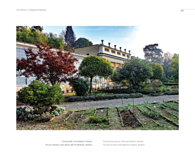 Orto Botanico | Botanical Gardens 249 I locali protetti, Orto Botanico, Modena The protected spaces, Botanical Gardens, Modena Scorcio dell’area a cielo aperto dell’Orto Botanico, Modena The open-air area of the Botanical Gardens, Modena
