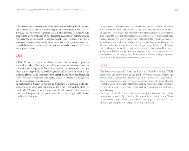 stico, con un approccio scientifico globale, affiancando interventi spe- The Interdepartmental Centre on Safety and Risk Prevention, CRIS