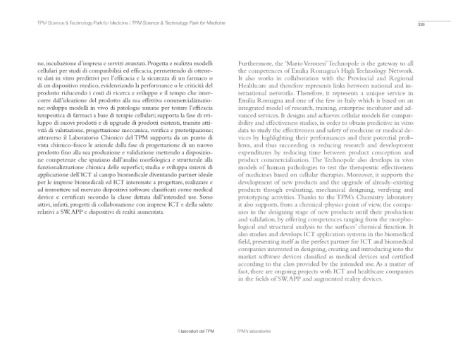 ne competenze che spaziano dall’analisi morfologica e strutturale alla product commercialisation. The Technopole also develops in vivo