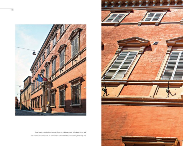 108 Due vedute della facciata del Palazzo Universitario, Modena (foto AB) Two views of the façade of the Palazzo Universitario, Modena (photo by AB)