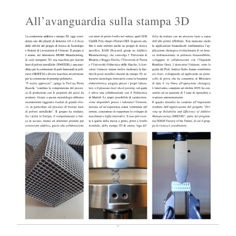 e Sistemi di Lavorazione di Unimore. Il gruppo si specifico, RAM (Research group on Additive plicazione chirurgica rivoluzionaria di un bron-