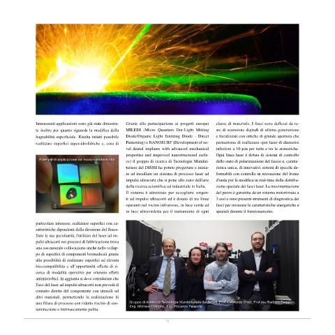realizzare superfici super-idrofobiche e, cosa di Patterning) e NANOSURF (Development of no- permettono di realizzare spot laser di diametro