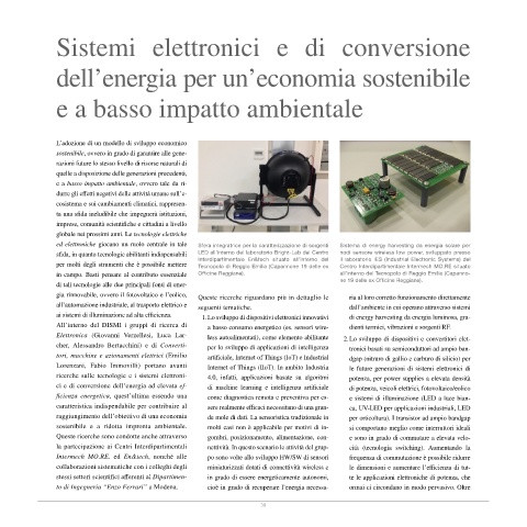 All’interno del DISMI i gruppi di ricerca di a basso consumo energetico (es. sensori wire- dienti termici, vibrazioni e sorgenti RF.