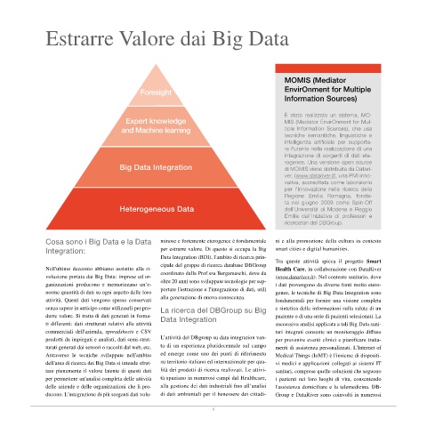 senza sapere in anticipo come utilizzarli per pro- La ricerca del DBGroup su Big e sintetica delle informazioni sulla salute di un