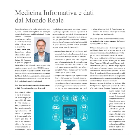 Italiana del Farmaco), Prof. Luca Paniof. Luca Pani – ottimizzare la qualità delle cure e raggiun- necessariamente farmaci o biologici, ma anche