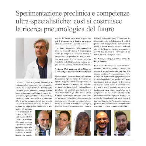 la disciplina. I professori Mariani, Bisetti, Velluti, di terapia intensiva pneumologica, di endosco- lari alla base di molti dei processi patologici che