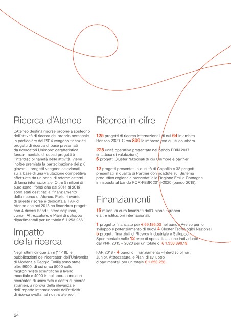 dell’attività di ricerca del proprio personale. 125 progetti di ricerca internazionali di cui 64 in ambito